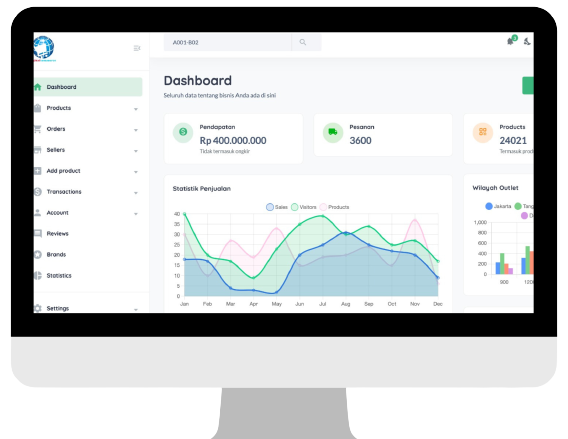 Dengan satu dashboard, anda bisa dengan mudah mengelola semua proses bisnis anda
