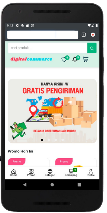 Online kan bisnis anda dengan Digitalcommerce dengan fiture yang sudah responsive di berbagai device (desktop, tablet, handphone), yang dapat dengan mudah untuk pelanggan saat ingin berbelanja di toko anda